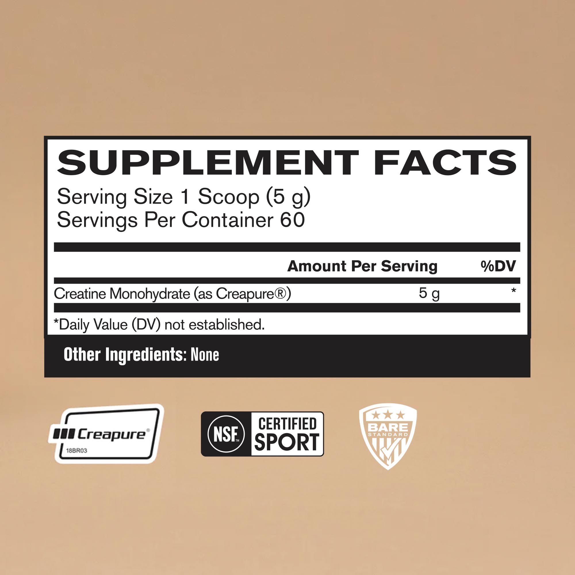 Creatine Monohydrate sourced from Creapure® providing 5 grams per serving.