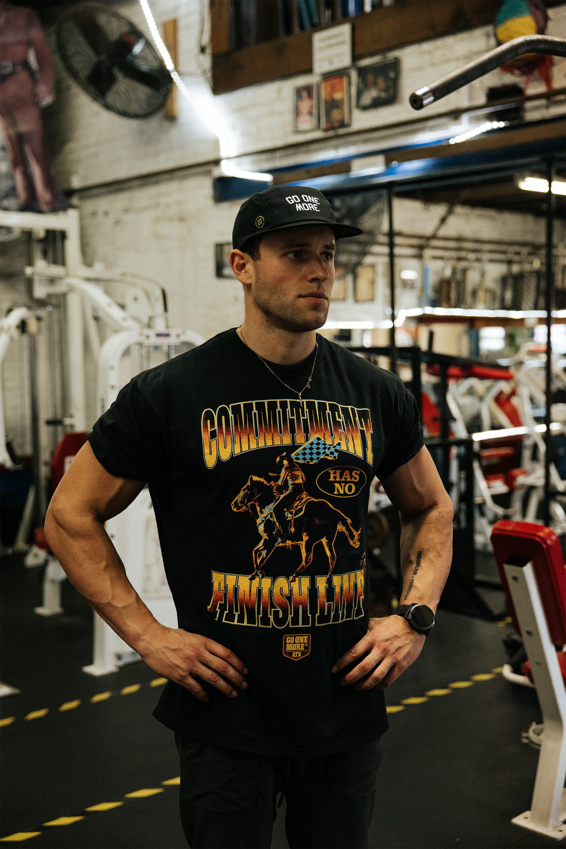 Our 2026 mantra, “Commitment Has No Finish Line,” on our classic tee. This is your reminder that the work is never done.