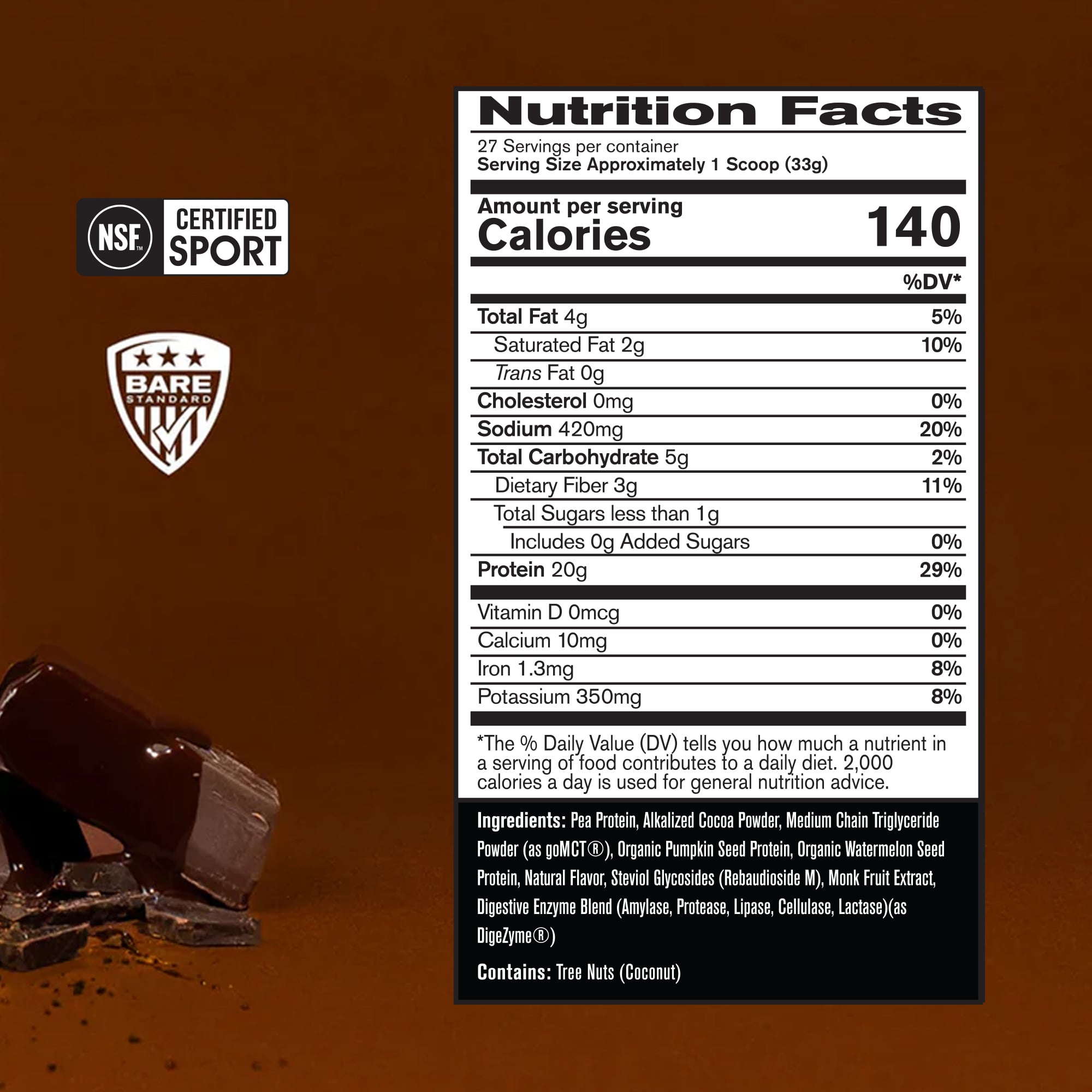 A naturally sweetened, plant-based protein powder with 20 grams of protein per serving.