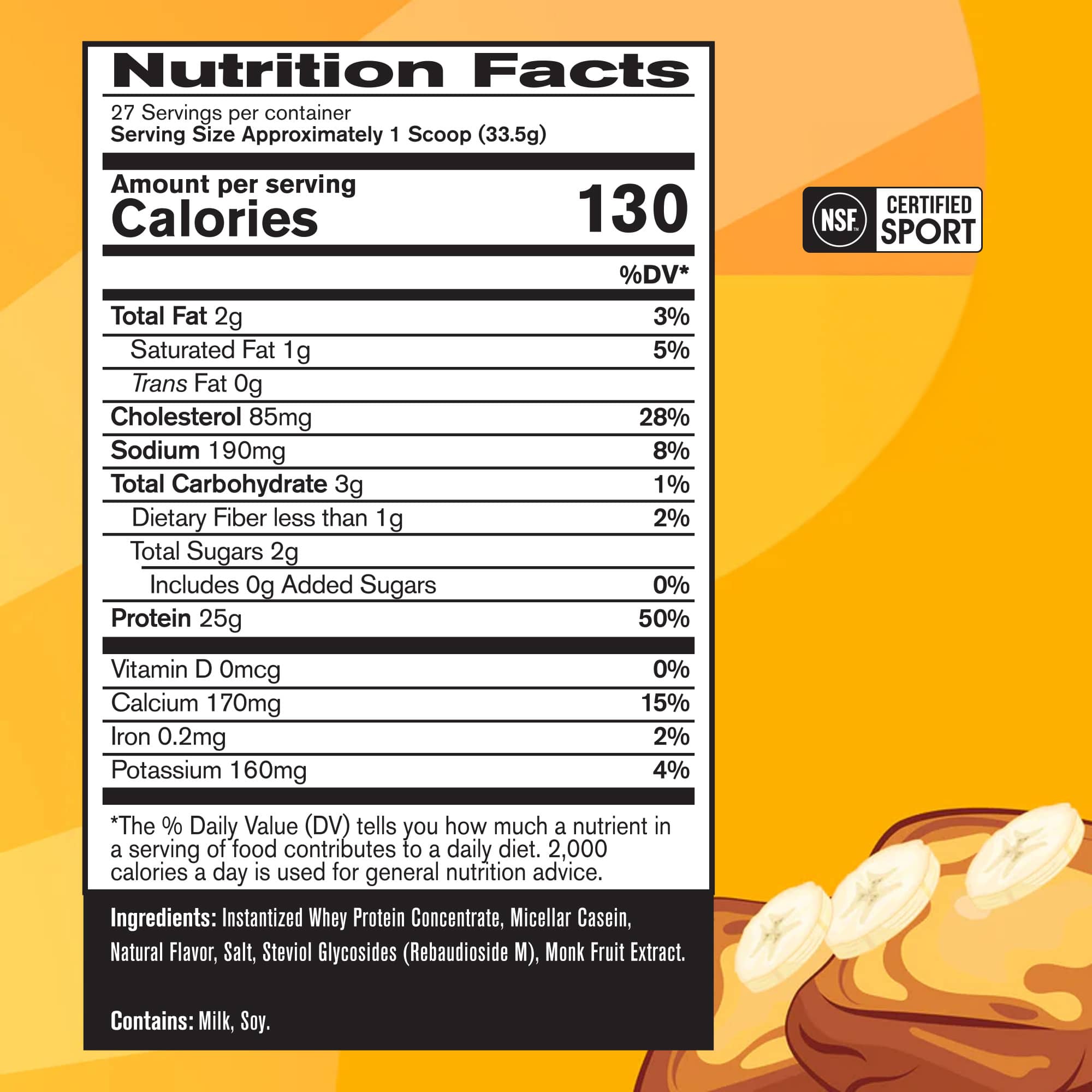 A whey-casein protein blend containing 25 grams of protein per serving to improve recovery and build muscle.